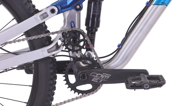 Велосипед YUEH Y003 / Y004 с алюминиевой двухподвесной рамой M/L, система FSA Comet DM ME 30Tх170mm (High Pivot), воздушная вилка RockShox Psylo Silver RC, задний амортизатор RockShox, переключатель Shimano Deore, тормоза Tektro HD-M535